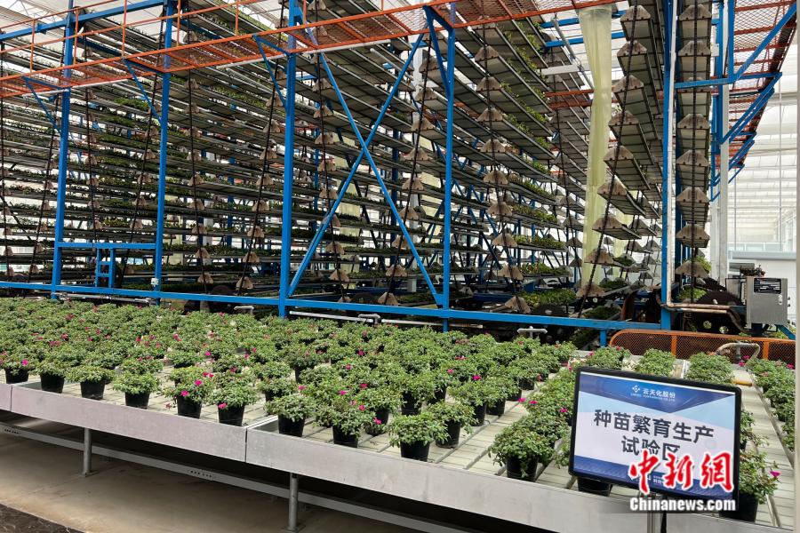 云天化綠色農(nóng)業(yè)科創(chuàng)中心中,種苗繁育生產(chǎn)試驗區(qū)正在運作。中新網(wǎng) 張鈺惠 攝
