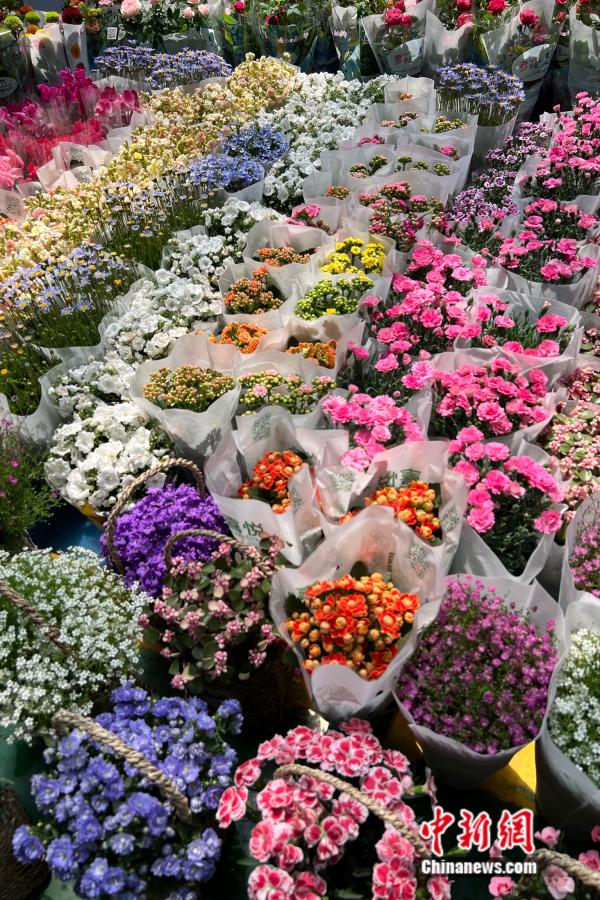 昆明斗南花卉市場(chǎng),鮮花種類繁多。中新網(wǎng) 張鈺惠/攝
