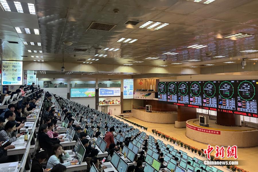 昆明國(guó)際花卉拍賣交易中心,花卉拍賣正在進(jìn)行。中新網(wǎng) 張鈺惠/攝