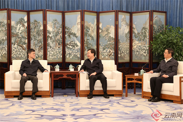3月31日,王寧王予波在昆明與裴金佳一行舉行工作會談。記者 雷桐蘇 攝