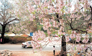 黑筇公路兩旁的泡桐花讓人陶醉。 記者趙偉攝