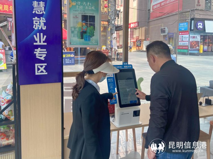 在五華區(qū)紅云零工市場(chǎng)內(nèi)的“智慧就業(yè)專(zhuān)區(qū)”,勞動(dòng)者正在體驗(yàn)“刷臉求職”。