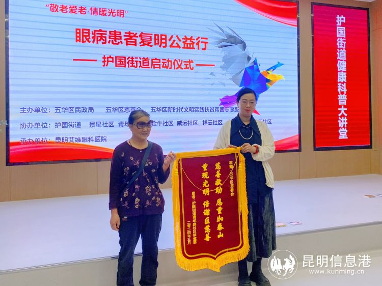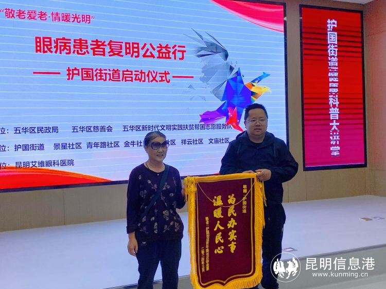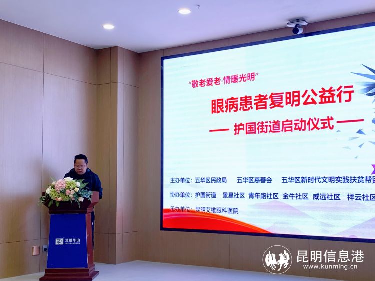 昆明信息港訊 4月10日上午,一場(chǎng)公益活動(dòng)情暖五華區(qū)護(hù)國(guó)街道轄區(qū)居民。由五華區(qū)民政局、五華區(qū)慈善會(huì)、五華區(qū)新時(shí)代文明實(shí)踐扶貧幫困志愿者服務(wù)隊(duì)、護(hù)國(guó)街道主辦,昆明艾維眼科醫(yī)院黨支部承辦的五華區(qū)“敬老愛老·情暖光明”眼病患者復(fù)明公益行護(hù)國(guó)街道啟動(dòng)儀式在艾維眼科舉行。當(dāng)天,五華區(qū)護(hù)國(guó)街道近40名轄區(qū)居民參加了活動(dòng)。