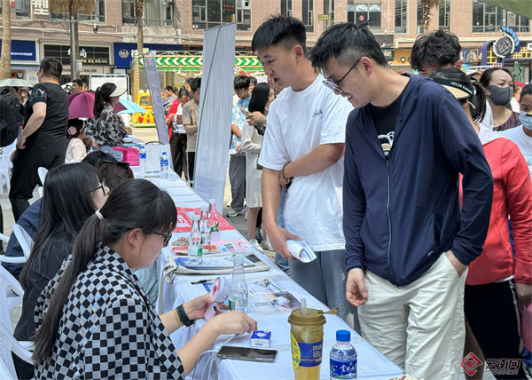 據(jù)悉,本次招聘會由中共昆明市五華區(qū)委社會工作部、區(qū)人力資源和社會保障局、紅云街道、區(qū)商務(wù)行業(yè)投資促進(jìn)局、區(qū)總工會、區(qū)工商業(yè)聯(lián)合會、區(qū)公共就業(yè)和人才服務(wù)中心、銀河社區(qū)、友脈控股集團(tuán)、小磚塊網(wǎng)絡(luò)科技(云南)有限公司等單位聯(lián)合舉辦,共有40余家用人單位參加,提供各類就業(yè)崗位1200余個(gè),招聘會現(xiàn)場,五華區(qū)人力資源和社會保障局、區(qū)總工會、區(qū)工商聯(lián)等部門開展就業(yè)創(chuàng)業(yè)、勞動(dòng)維權(quán)等政策宣傳。(云南網(wǎng) 記者龍舟 攝影報(bào)道)