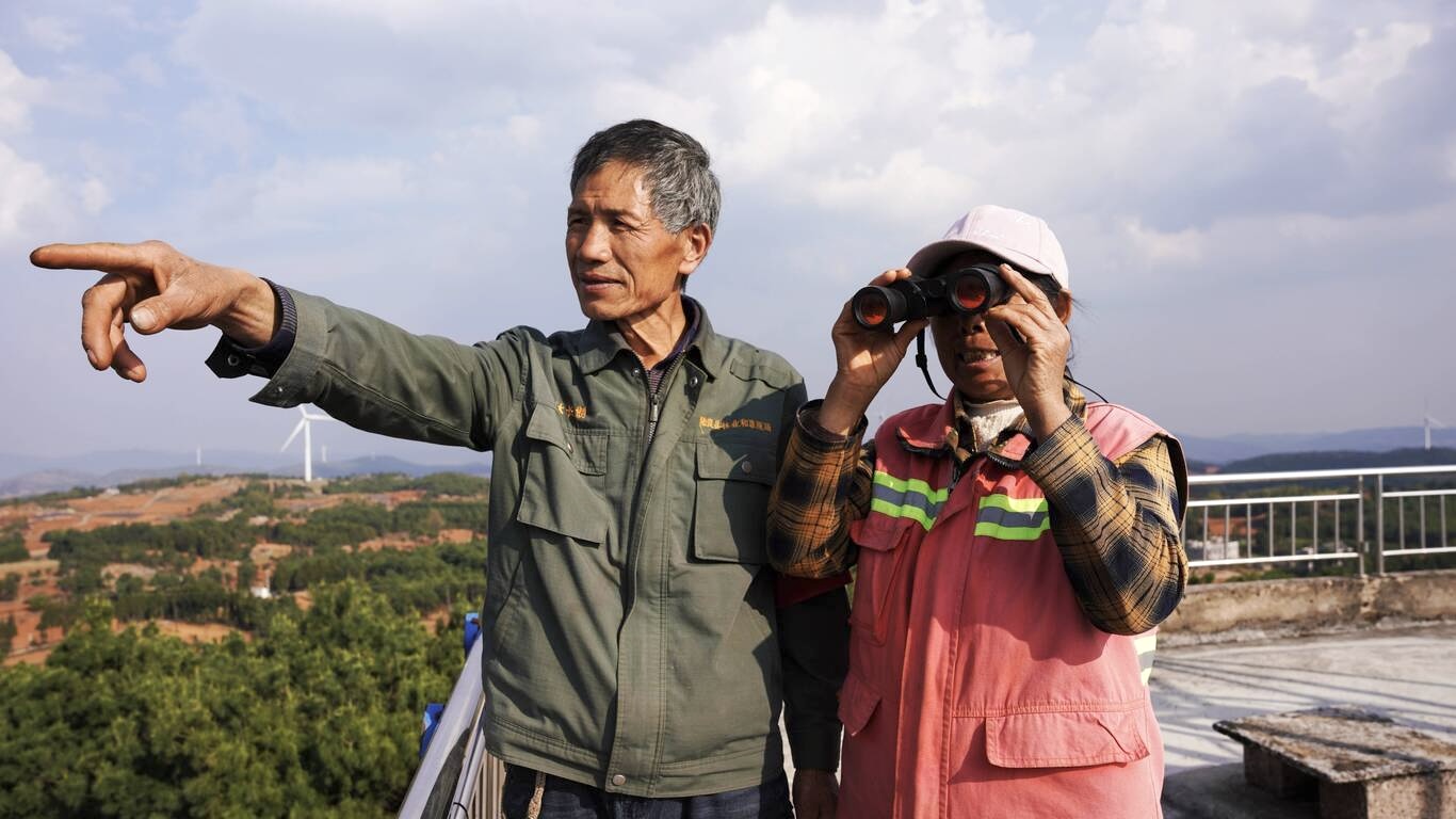 王石貴夫婦守的是花木山林場,20世紀80年代初還是亂石嶙峋的石漠化荒山,在“陸良八老”植樹造林的帶動下,參與植樹的人越來越多,目前森林面積已經(jīng)發(fā)展到7400多畝,而王石貴夫婦的任務(wù),就是堅守林場的瞭望塔,守護這片林海。