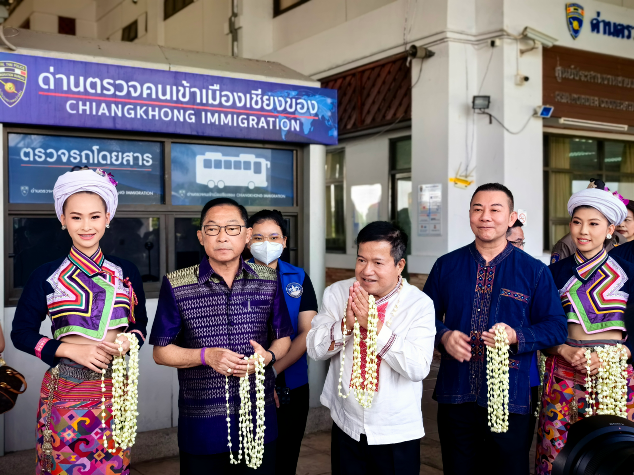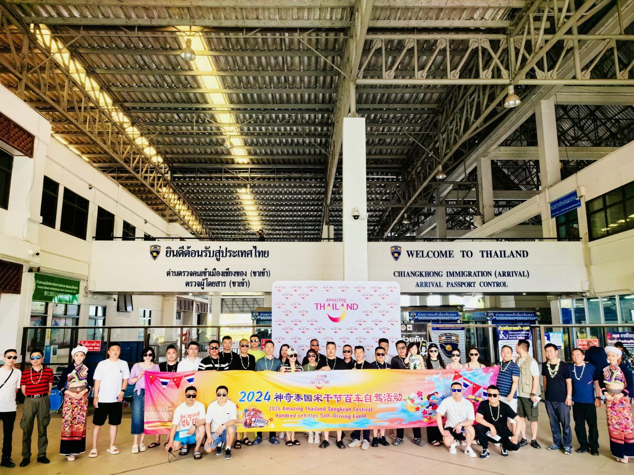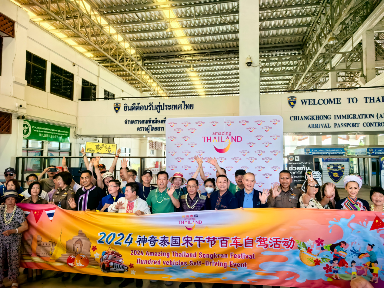 伴隨著熱情洋溢的歡迎聲,60多輛汽車組成的自駕游車隊(duì)井然有序地駛?cè)胩﹪?guó)清萊府清孔口岸,準(zhǔn)備開啟一段充滿異國(guó)風(fēng)情的旅程。4月11日,正值泰國(guó)宋干節(jié)前夕,泰國(guó)國(guó)家旅游局(以下稱:泰旅局)主辦的宋干節(jié)百車自駕活動(dòng)迎來(lái)第一批中國(guó)游客,泰國(guó)相關(guān)部門領(lǐng)導(dǎo)親臨口岸歡迎八方來(lái)客。