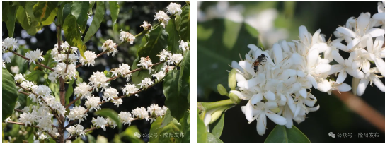 晚春四月,漫山遍野的咖啡花已悄然綻放,清香怡人的花香彌漫山間,綠葉掩映的枝條上,若簇簇白雪壓滿枝條,一聞一見均惹人歡喜。