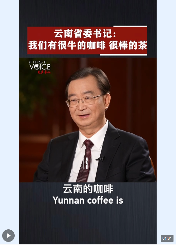 向云端,山那邊……近年來,云南充分依托得天獨(dú)厚的自然稟賦,形成了獨(dú)具特色的龐大產(chǎn)業(yè)集群,走出了一條生態(tài)賦能的高質(zhì)量發(fā)展之路。節(jié)目中,王寧向全球網(wǎng)友推介云南的咖啡和茶葉:“全國95%的咖啡來自云南,這里有很牛的咖啡和很好的茶。”