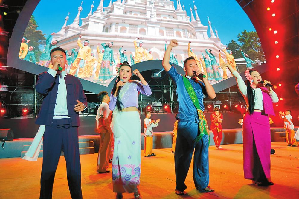 臺上縱聲放歌,臺下互動火熱?!坝幸粋€美麗的地方”德宏專場暨芒市2024年潑水狂歡節(jié)“樣樣好”音樂篝火晚會為觀眾帶來一場民族音樂與現(xiàn)代音樂相融合的文化盛宴。晚會分3個章節(jié),分別為“樣樣好德宏 喜洋洋芒市”“愛在德宏 相約芒市”“幸福德宏 網(wǎng)紅芒市”,約4萬名觀眾參與。