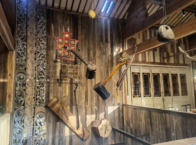 宣科書房懸掛的古樂器。(楊四娟 攝)