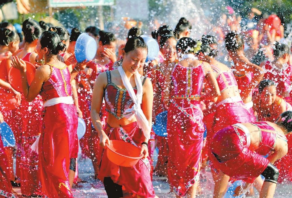 西雙版納傣族群眾歡慶潑水節(jié)。記者禹江寧/攝
