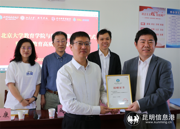 彌渡縣副縣長自永康向北京大學(xué)教育學(xué)院、好未來集團(tuán)授予捐贈(zèng)證書