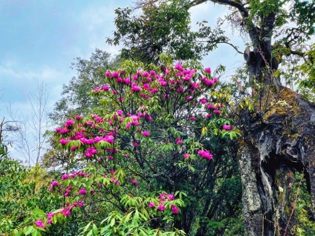近日,維西縣攀天閣鄉(xiāng)岔枝洛村的杜鵑花迎來(lái)盛開(kāi)期,一簇簇粉紅、艷紅、雪白等各色杜鵑與青山交相輝映,呈現(xiàn)一派春意盎然的美好景象,吸引眾多游客前來(lái)踏春賞花。(和麗瑤 李瑞鴻 攝影報(bào)道)