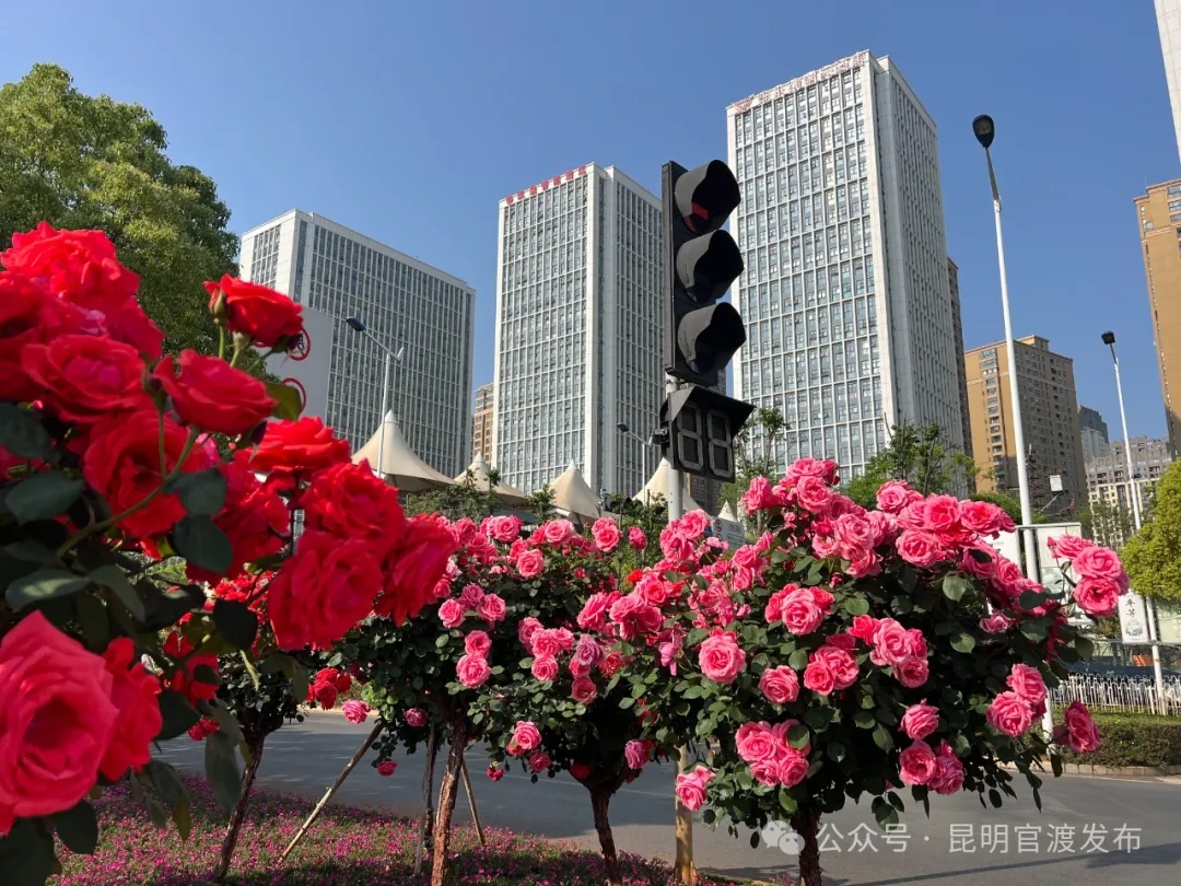 近期,呈貢街頭的2500余株樹狀月季、43910平方米地被月季,以及呈黃立交橋橋體掛花種植的1000盆月季,在這個季節(jié)里毫無保留地綻放。在錦繡大街、彩云路、和諧路、春融街、春融西路、花都路等路段,四溢的花香、嬌艷的月季吸引行人紛紛駐足。