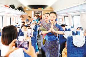 潑水節(jié)吸引大量游客乘坐列車到西雙版納旅游。中國(guó)鐵路昆明局集團(tuán)有限公司供圖