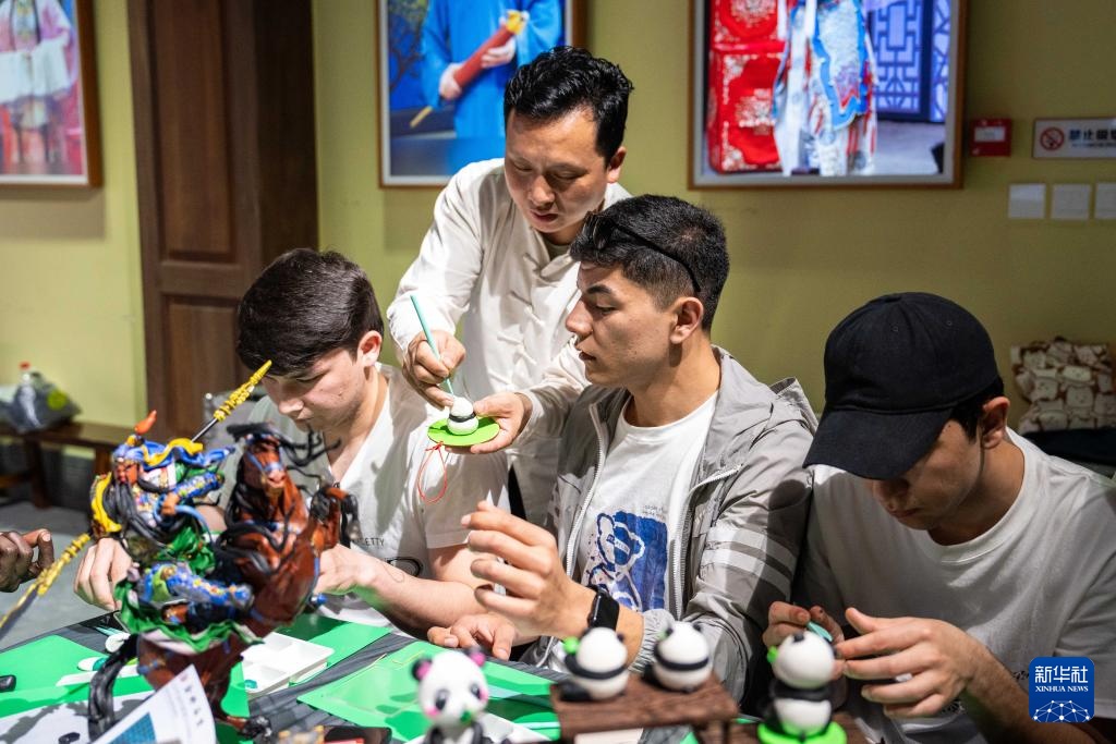 4月18日,在長沙非物質(zhì)文化遺產(chǎn)館,留學(xué)生在體驗(yàn)面塑制作。新華社記者 陳思汗 攝