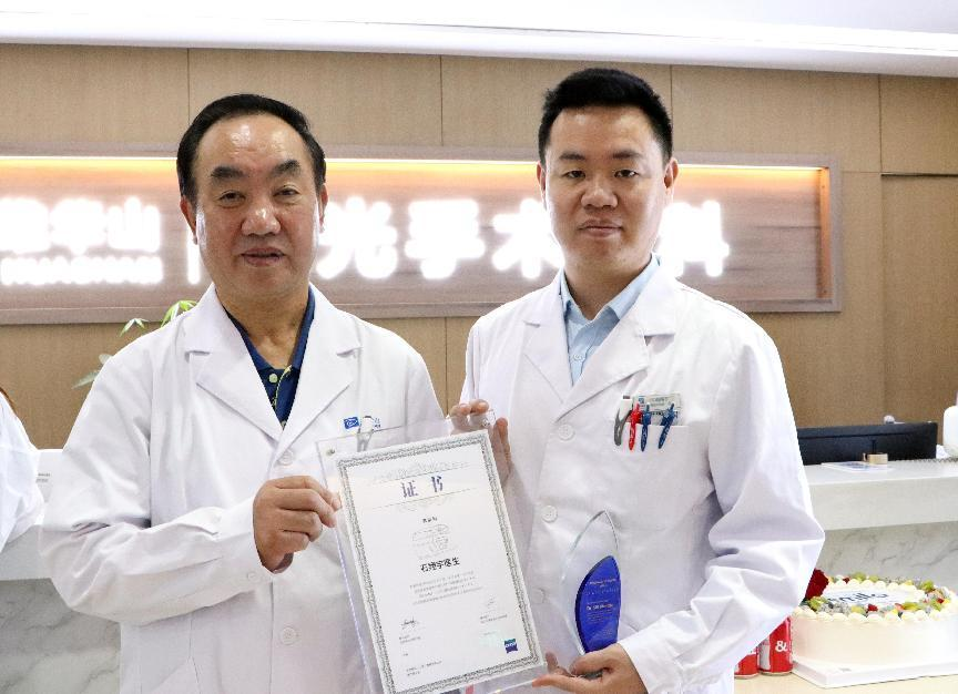 在蔡司官方、云南艾維眼科各級領(lǐng)導(dǎo)共同見證下,由云南艾維眼科集團總院長李旭松教授及昆明艾維眼科醫(yī)院屈光專科主任楊亞菲為石翔宇醫(yī)生頒發(fā)證書。