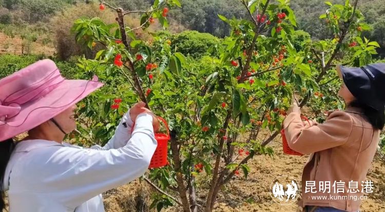 昆明信息港訊 記者楊雁 4月迎來櫻桃成熟季,位于安寧市縣街街道小紅祥村127戶農(nóng)戶房前屋后的600余畝櫻桃陸續(xù)進入成熟期,鮮紅的果實掛滿枝頭。該村近幾年改良后種植的新品種紅妃、紅寶石等櫻桃口味頗受群眾喜歡,四面八方的游客紛紛前來入園采摘新鮮果實。