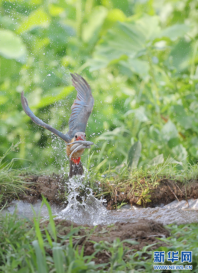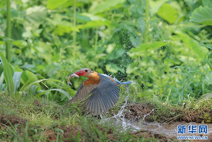 白胸翡翠捕魚出水瞬間(4月15日攝)。新華網(wǎng)發(fā)(楊學飛攝)