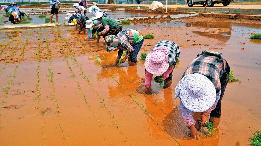 近日,袁隆平超級雜交水稻蒙自示范基地進行秧苗移栽,1400盤秧苗被移栽到100畝稻田中。今年育秧的品種是袁隆平超級雜交水稻新品種“卓兩優(yōu)1126”和“粒兩優(yōu)8022”,兩個品種都將攻關畝產1200公斤的目標。(記者饒勇 通訊員王曉梅/攝)