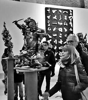 觀眾駐足欣賞王紹強作品《淬厲新之》。馬賽攝/光明圖片