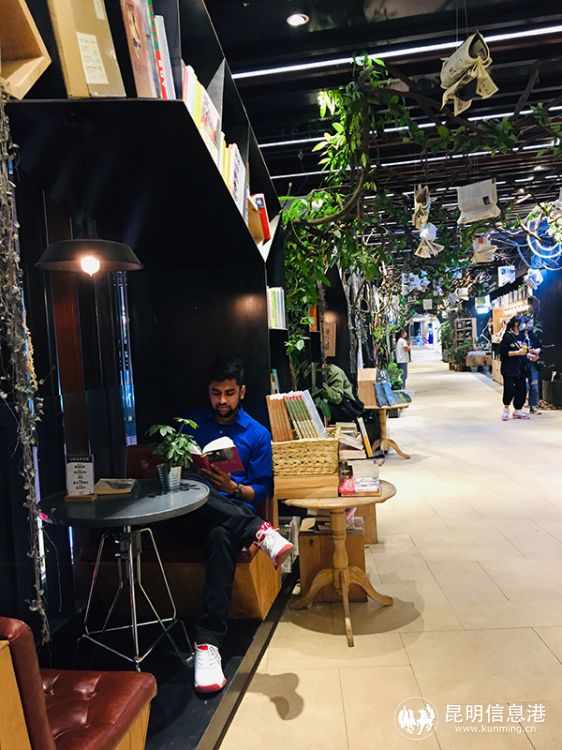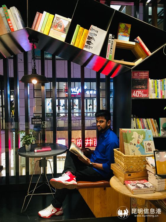 艾利福在昆明某一書店看書,享受靜謐時光。供圖