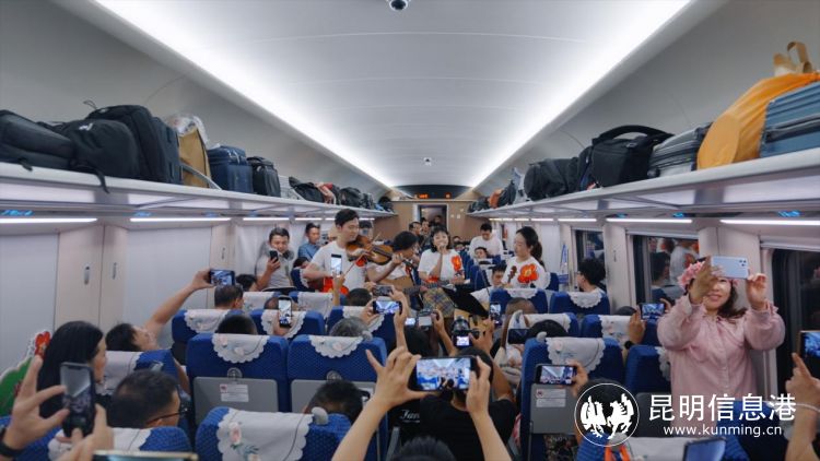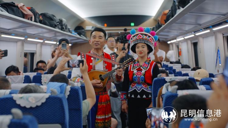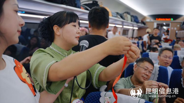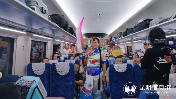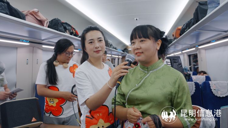 車廂內(nèi),呈貢區(qū)文化和旅游局副局長王羽萍為旅客推薦呈貢文旅資源,向國內(nèi)外游客發(fā)出了花都之旅的誠摯邀請,并為游客表演花燈歌舞《魅力呈貢我家鄉(xiāng)》,從一個(gè)側(cè)面表現(xiàn)中國民間文化藝術(shù)之鄉(xiāng)——呈貢花燈的歡快與優(yōu)美,使旅客感受到了呈貢獨(dú)特的民間文化藝術(shù)。