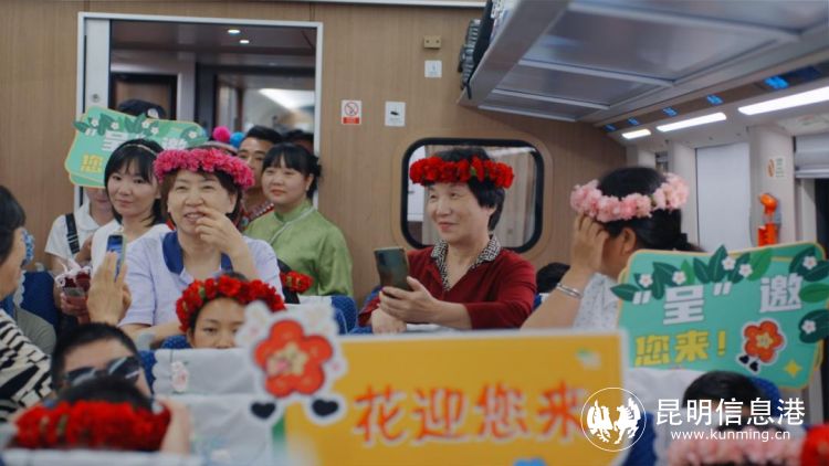 為積極響應(yīng)“一帶一路”倡議和云南“3815”戰(zhàn)略目標(biāo),慶祝中老鐵路國際旅客列車開行一周年。4月24日,2024年呈貢區(qū)花旅融合系列活動鮮花主題列車暨高鐵南站迎賓活動在中老鐵路國際旅客列車車廂、昆明南站列車出站口正式啟動,為中外來客準(zhǔn)備了一場意想不到的迎賓禮。