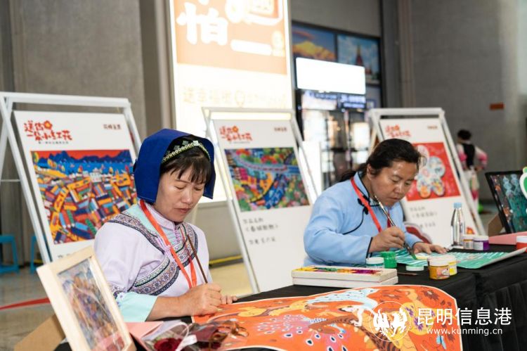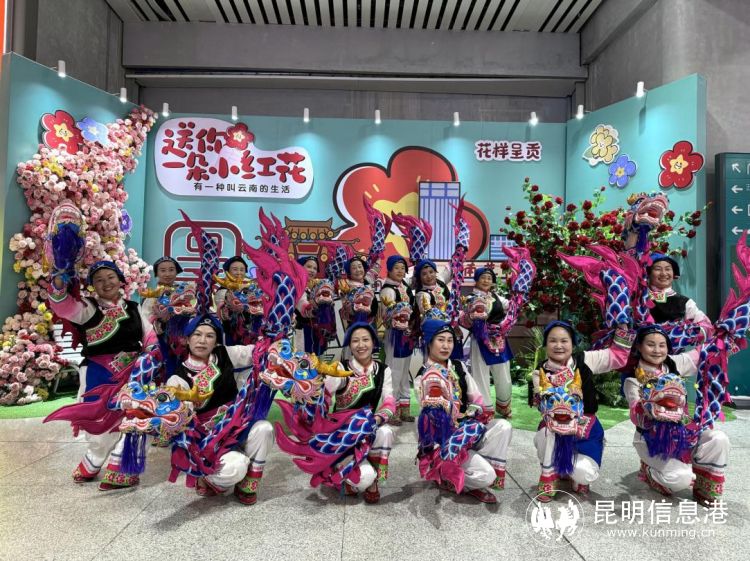 一條鐵路蔓延千里,不僅縮短了時(shí)空的距離,更帶動沿線人民讓彼此走得更近。在D88次列車出站口,站臺搖身一變,成為一個(gè)展示呈貢傳統(tǒng)文化的生動舞臺,“見龍不見人”的非物質(zhì)文化遺產(chǎn)“小獨(dú)龍”舞,跳出龍騰飛舞的藝術(shù)效果;而呈貢民間繪畫的展示,不僅飽蘸生活激情、田園色彩,更是傾注著作者對新時(shí)代幸福生活的熱愛;現(xiàn)場的創(chuàng)意主題墻吸引了眾多旅客紛紛打卡拍照……如此創(chuàng)意的迎賓活動讓每位旅客在到達(dá)的第一時(shí)間感受到了旅途的溫暖與當(dāng)?shù)厝嗣竦臒崆椤?/p>