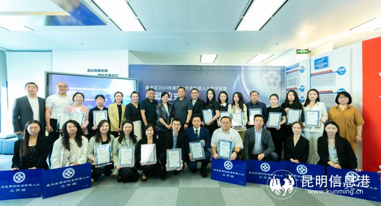 活動現場,昆明恒穎地產有限公司、云南專致網絡科技有限公司、昆明肯德基有限公司、昆明市公證員協會、泰康人壽保險有限責任公司云南分公司等17家單位被授予“2024年度盤龍區(qū)新的社會階層人士樓宇聯盟成員”稱號,北京京師(昆明)律師事務所被聘為“盤龍區(qū)2024年度新的社會階層人士樓宇聯盟”輪值會長單位。云南省昆明市明信公證處、北京德和衡(昆明)律師事務所、云南樂訊在線文化發(fā)展有限公司(新浪云南)、云南芒嘎拉古茶文化傳播有限公司、昆明駱駝灣美術館、昆明小籮筐農業(yè)科技有限公司(樂之營地)共6家單位被授予“2024年度盤龍區(qū)新的社會階層人士工作站”稱號,與會領導為各工作站授牌。