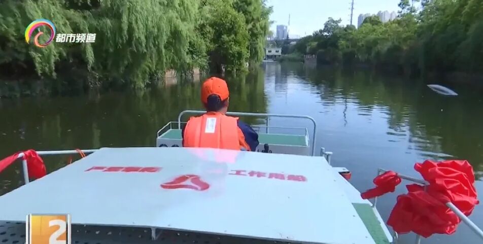 上午9點(diǎn)半,55歲的河道環(huán)衛(wèi)工朱培海,駕駛著剛剛啟用的自動(dòng)打撈船,對(duì)大觀河開(kāi)始當(dāng)天的第2次河面清理。