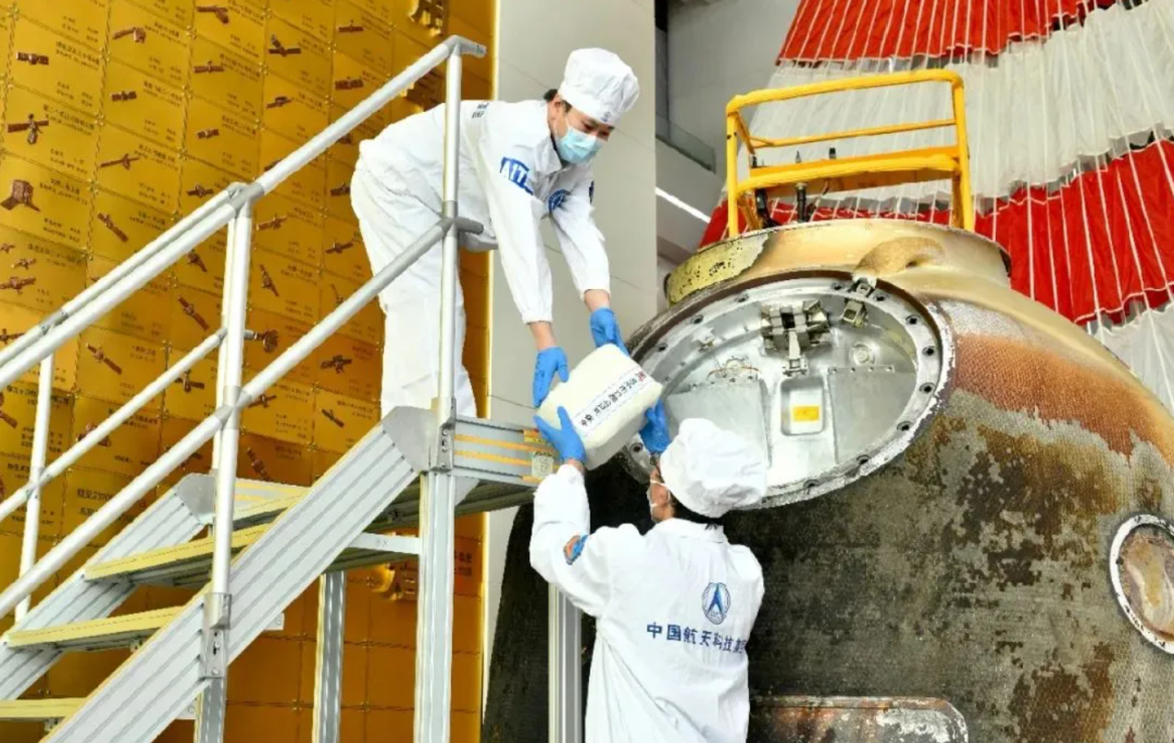 工作人員開艙取出神舟十二號載人飛船搭載物品 圖源:云南發(fā)布