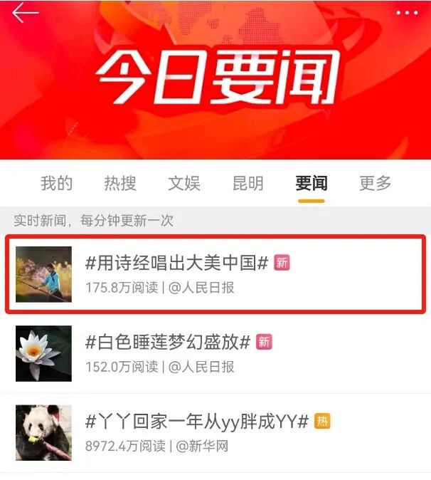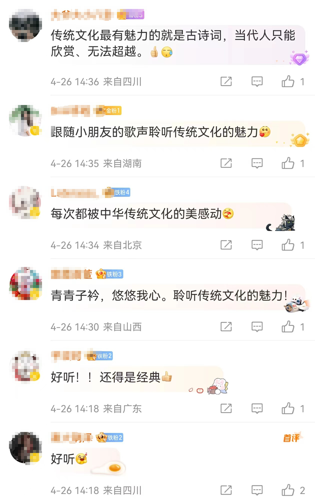 截至4月29日9時(shí),人民日?qǐng)?bào)、央視新聞、新華網(wǎng)、光明網(wǎng)、中國(guó)網(wǎng)等164家主流媒體共對(duì)“詩(shī)經(jīng)里的中國(guó)”誦讀演唱活動(dòng)系列稿件、視頻轉(zhuǎn)載720余次?;顒?dòng)主話題#詩(shī)經(jīng)里的中國(guó)#及延伸話題閱讀量超過(guò)6.1億次,討論量超過(guò)1.2萬(wàn)次,上榜微博熱搜3次。