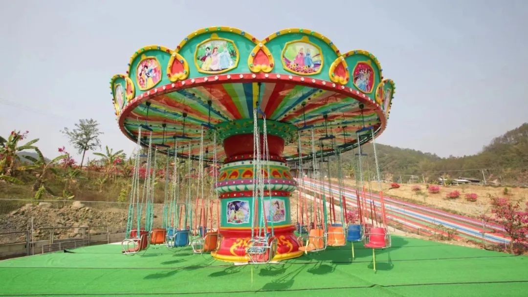 我們的兒童樂園包括旋轉飛椅、旋轉杯等多種游樂設施,孩子們還可以乘坐小火車,沿著園區(qū)內的彩繪道路,欣賞整個菜園子的美麗風景。
