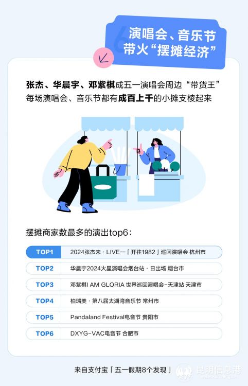 張杰、華晨宇、鄧紫棋成五一演唱會“帶貨王”,周邊擺攤小商家數(shù)量最多,每個演出現(xiàn)場都有成百上千的小攤在周邊支棱起來。