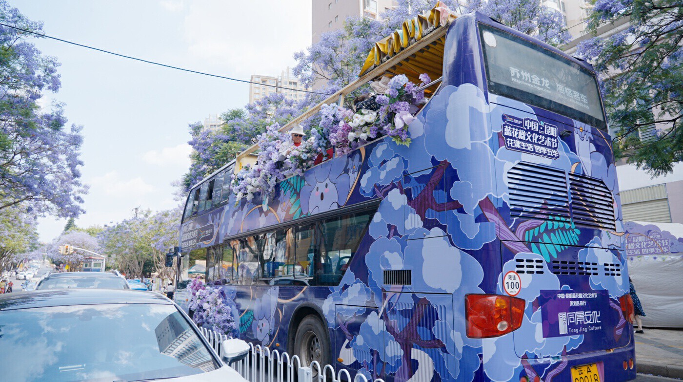 藍(lán)花楹主題雙層賞花巴士 王杰攝