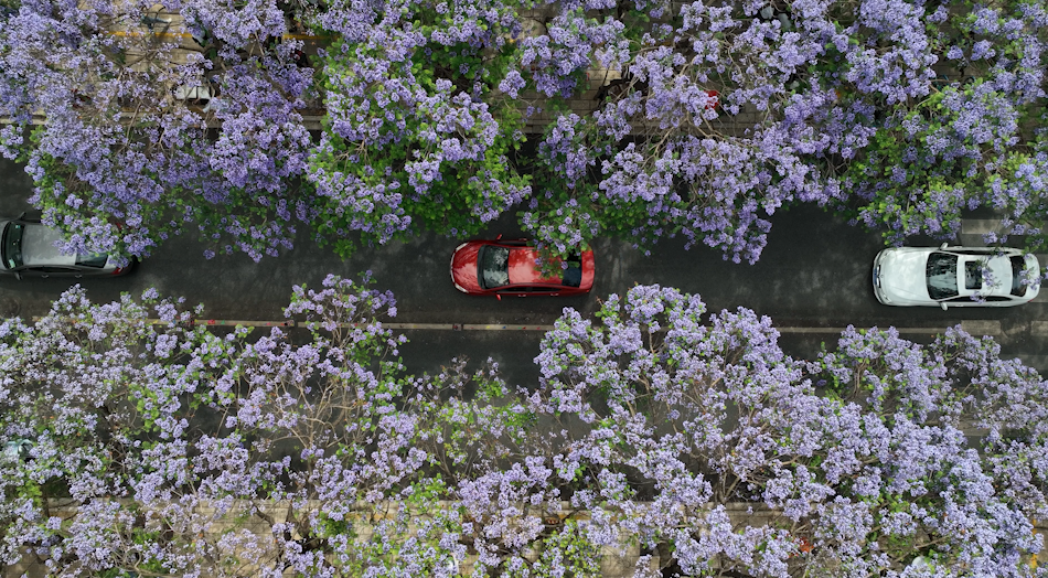 “五一”期間昆明藍花楹盛放 孫兵、張睿紋攝