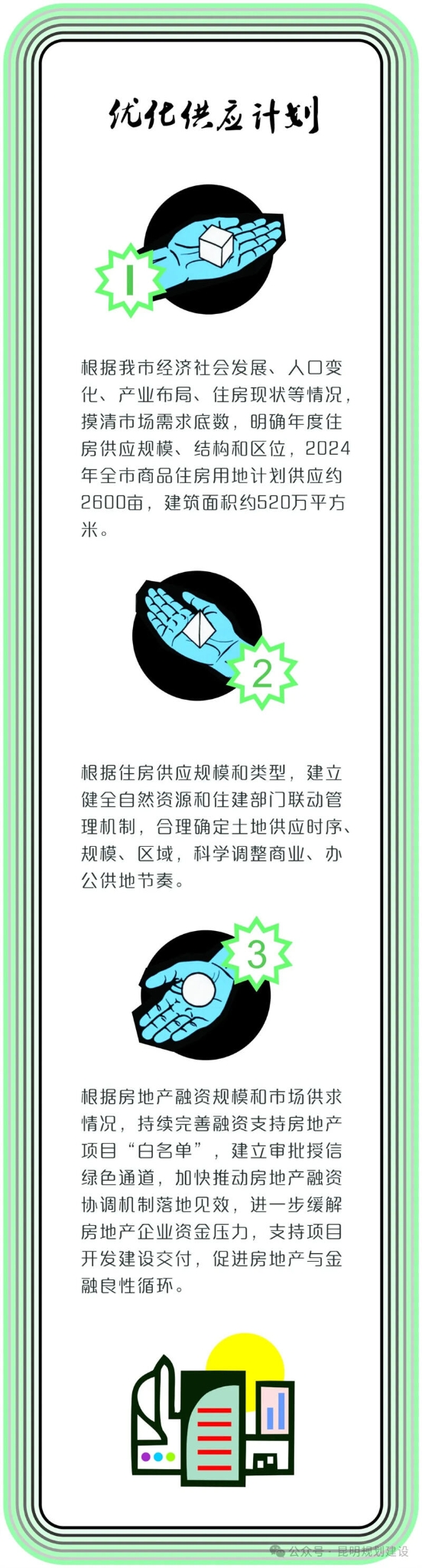 近日,昆明市住房城鄉(xiāng)建設(shè)局發(fā)布《昆明市2024年住房發(fā)展年度計(jì)劃》,今年將優(yōu)化供應(yīng)計(jì)劃、加快推進(jìn)保障性安居工程建設(shè),推動房地產(chǎn)業(yè)轉(zhuǎn)型和高質(zhì)量發(fā)展。