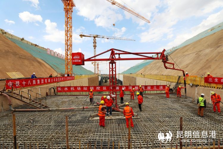 渝昆高鐵長水機場站明挖區(qū)間首塊頂板完成澆筑。通訊員李何 胡義 劉書峰 供圖