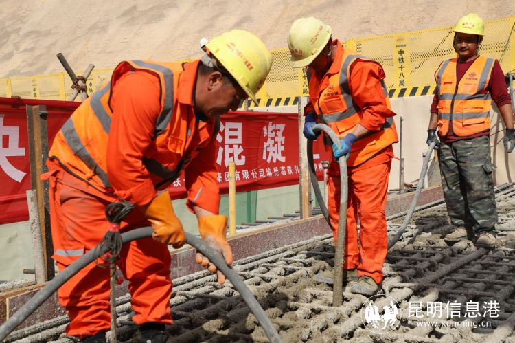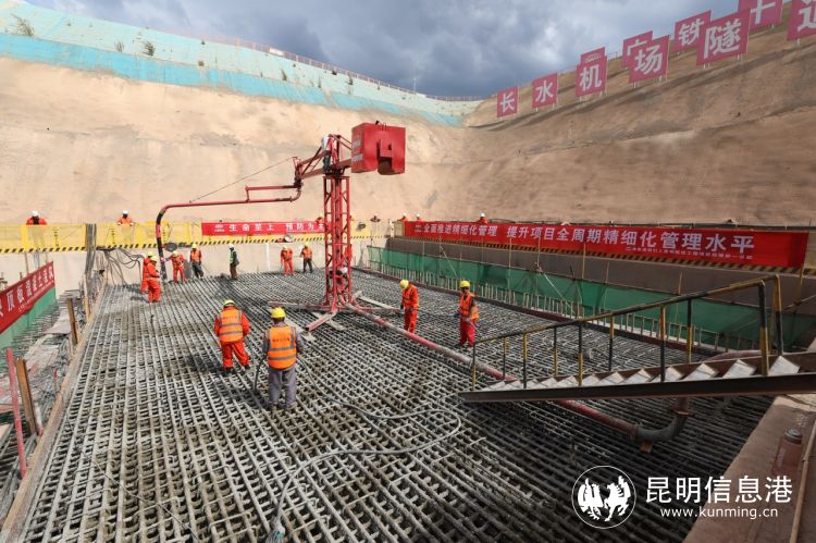 昆明信息港訊 記者上官艷君 記者從中國鐵路昆明局集團有限公司(下稱“國鐵昆明局”)了解到,5月7日凌晨,經(jīng)過建設(shè)者近40個小時的連續(xù)澆筑作業(yè),渝昆高鐵長水機場站明挖區(qū)間首塊頂板順利完成澆筑,這標(biāo)志著車站明挖區(qū)間正式進入主體結(jié)構(gòu)施工階段,為長水機場隧道進口貫通,以及渝昆高鐵早日建成通車奠定了堅實基礎(chǔ)。