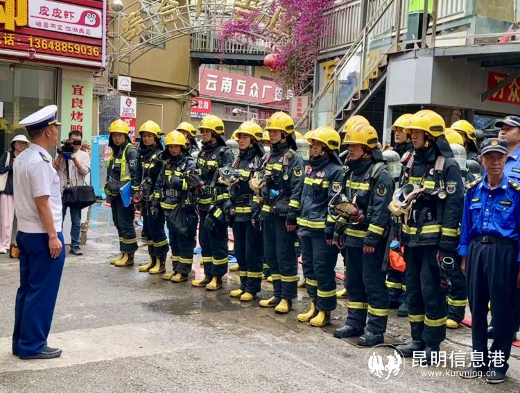 昆明信息港訊 記者鄧國梅 為提升隊伍實戰(zhàn)攻堅打贏能力,全力做好滅火救援準備工作,5月9日下午,盤龍區(qū)消防救援大隊在鼓樓街道靈光社區(qū)大鼓樓美食城開展火災撲救實戰(zhàn)演練。