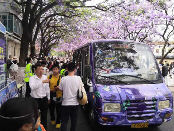 隨著教場中路藍花楹花期進入尾聲,及第六屆藍花楹文化藝術(shù)節(jié)的圓滿結(jié)束,2024年賞楹季期間,昆明公交集團共服務(wù)前往教場中路的賞楹游客103.2萬人。