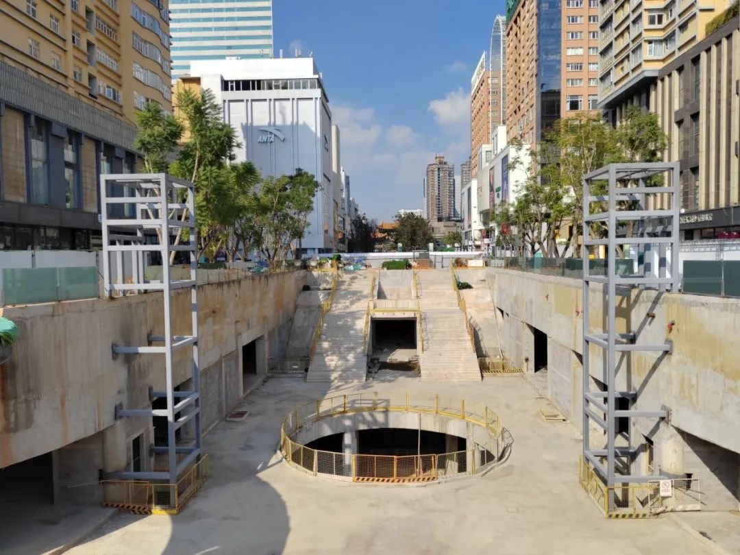 該項目建面約3萬平方米,有1311個商鋪;全長約320米,內(nèi)部結(jié)構(gòu)層高5.1米,單通道寬6米,與地鐵1號線金碧廣場站無縫接駁,有17個地面出入口,串聯(lián)起順城、昆百大、柏聯(lián)百盛等商業(yè)體。