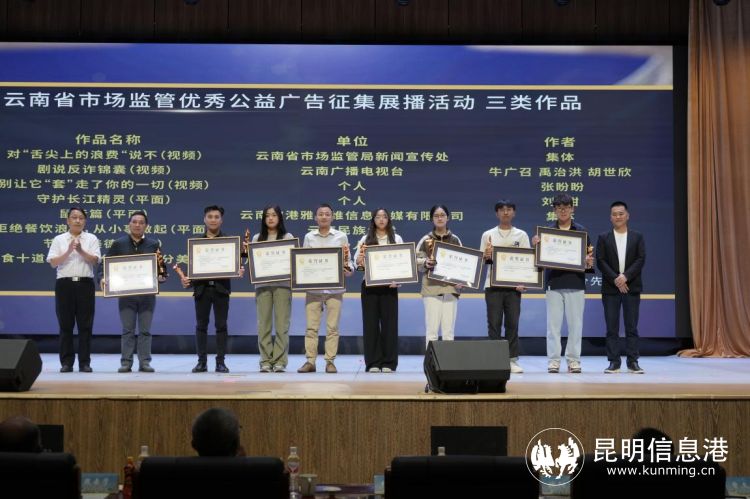 昆明信息港訊 記者李紅鸞 5月10日,云南省市場(chǎng)監(jiān)管優(yōu)秀公益廣告征集展播活動(dòng)頒獎(jiǎng)暨啟動(dòng)儀式在云南民族大學(xué)雨花校區(qū)志公堂舉行。本次活動(dòng)由云南省市場(chǎng)監(jiān)督管理局主辦,云南民族大學(xué)及云南省廣告協(xié)會(huì)承辦,通過征集和展播優(yōu)秀公益廣告作品,旨在進(jìn)一步凝聚市場(chǎng)監(jiān)管力量,傳播市場(chǎng)監(jiān)管理念,促進(jìn)市場(chǎng)監(jiān)管高質(zhì)量發(fā)展。