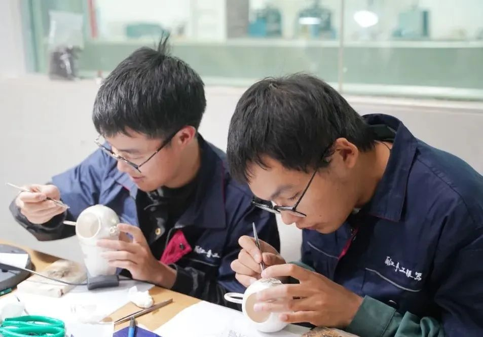 授牌儀式結(jié)束后,校方專業(yè)老師和行業(yè)技能專家為傳習(xí)中心工匠進(jìn)行銀胎掐絲琺瑯理論知識(shí)與實(shí)踐操作課程授課。