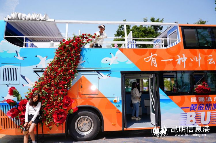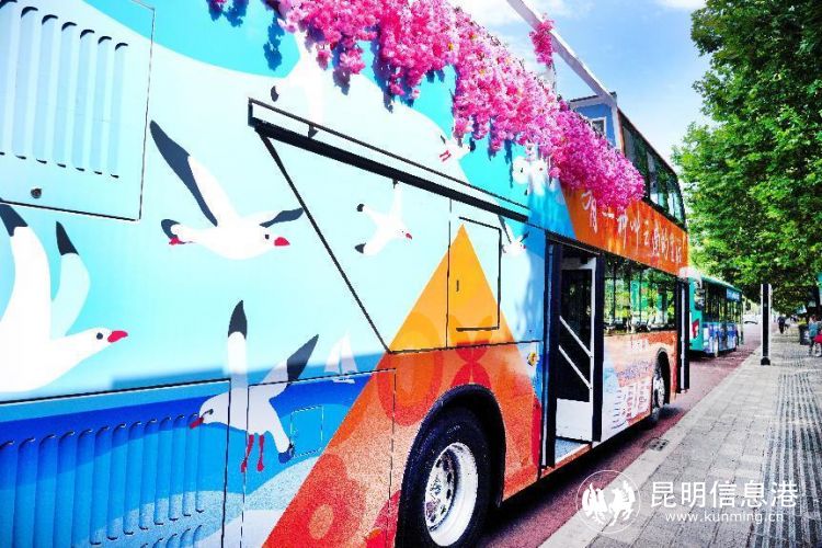 昆明信息港訊 記者周智宇 5月19日,昆明滇池黃金岸線旅游巴士開通試運行?!暗岢攸S金岸線旅游巴士”以4.2米雙層巴士打造主題車廂,開啟全新之旅。