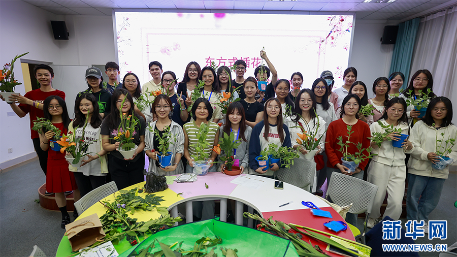 學生們正在插花(5月23日攝)。新華網 劉云 攝