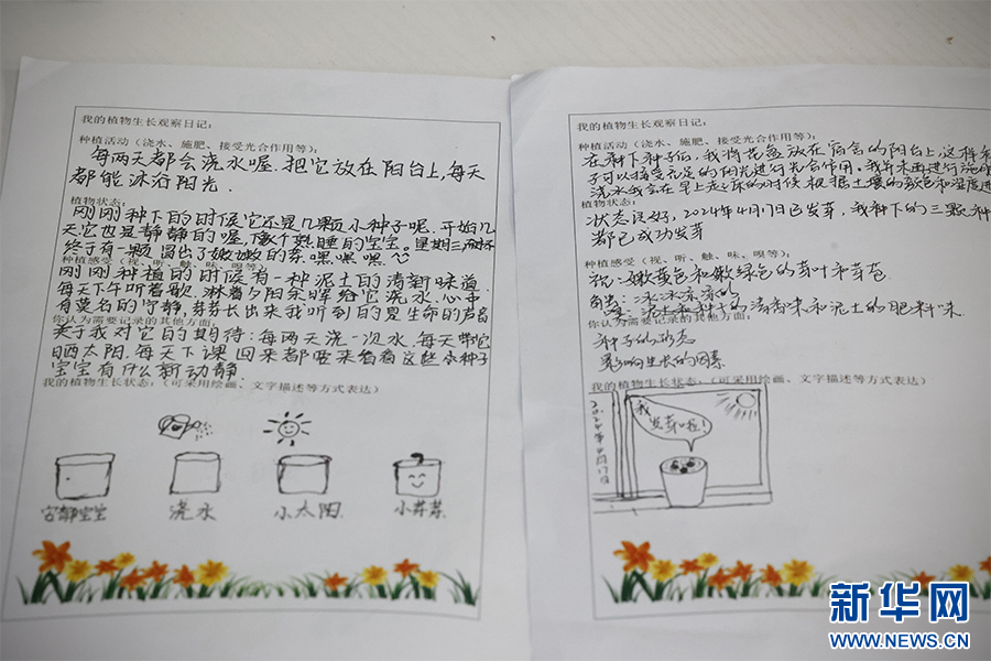 學生記錄下植物生長情況(5月23日攝)。新華網 劉云 攝