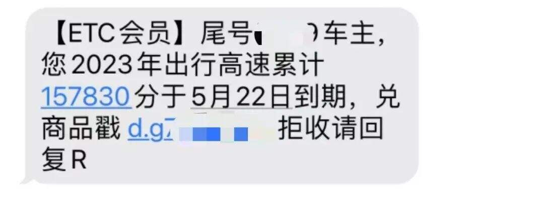 “ETC提醒”短信