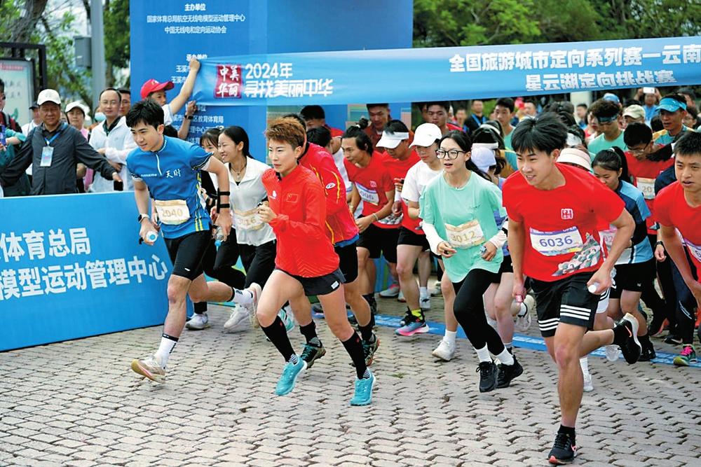開幕式當(dāng)天,2024年“尋找美麗中華”全國(guó)旅游城市定向系列賽玉溪站暨星云湖定向挑戰(zhàn)賽鳴笛開賽,來自全國(guó)各地近4000名定向賽選手參賽。(云南日?qǐng)?bào) 記者婁瑩)